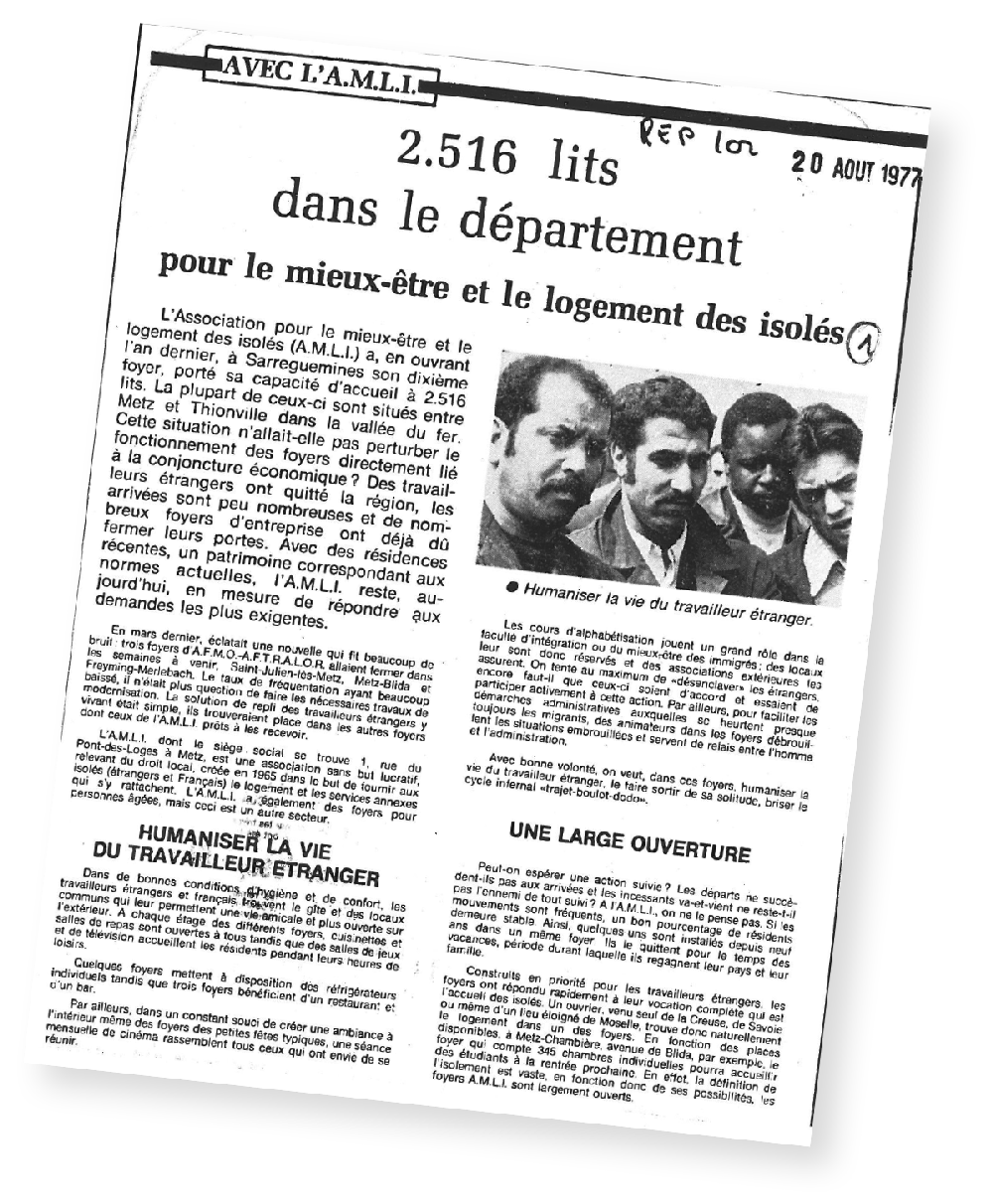 La création d’AMLI en 1965 avait répondu à un réel besoin, en relation évidente avec l’expansion des industries sidérurgiques. Celui-ci continua de se manifester avec vigueur à l’aube des années 1970, car les vallées usinières de l’Orne et de la Fensch continuèrent d’enregistrer un fort courant d’immigration.