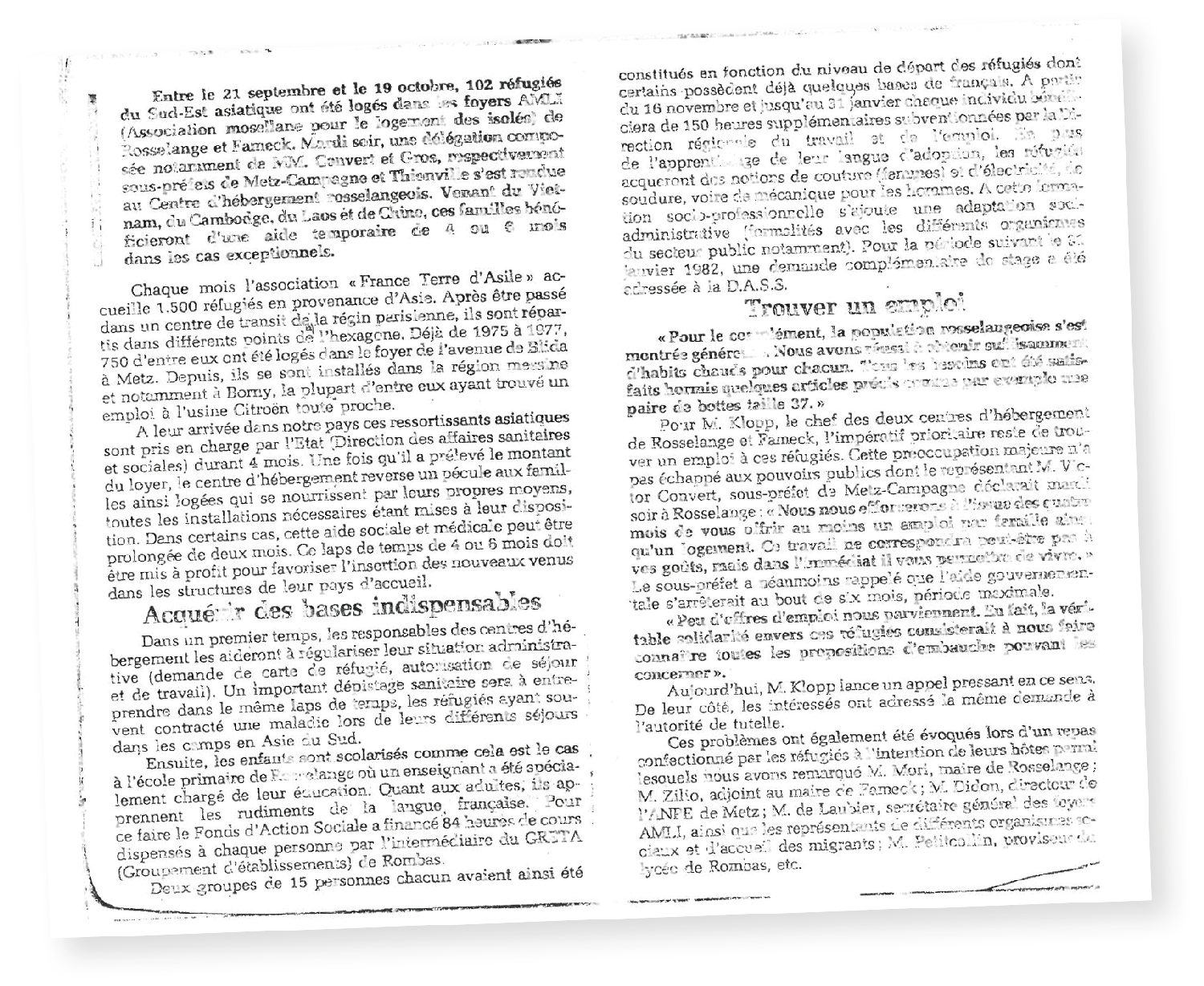 Avec la guerre des Balkans et du Sud-Est Asiatique, l’association répond aux urgences, adapte ses hébergements et développe de nouveaux services. Ainsi, en 1981, le foyer de Metz à Blida héberge, nourrit et aide près de 700 réfugiés en provenance du Vietnam, du Cambodge, du Laos et de la Chine. Deux centres de réfugiés de 50 lits chacun ouvrent en septembre 1981 à Rosselange et Fameck.